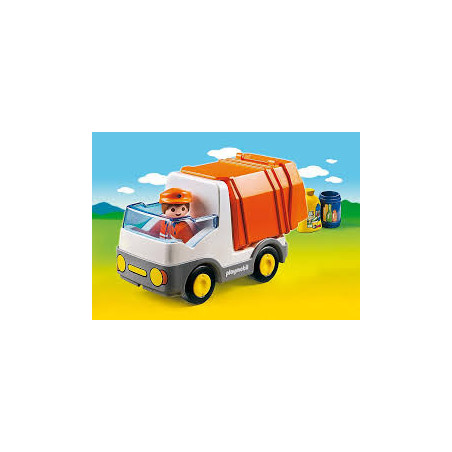 Playmobil 123 - Recycling Truck - Help keep the neighborhood clean with the 1.2.3 Recycling Truck. With colorful rounded pieces ideal for toddlers, this set includes a bright orange truck and uniformed driver. The two recycling containers also fit in the vehicle's sorting compartments.