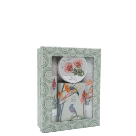 The Spa Day gift set includes gorgeous fynbos-scented Bath Crystals (larger, 200g), Body Lotion (160ml), Soap Bar (larger, 200g) and Body Butter (50g). All items feature the beautiful South African Celebration artwork and come perfectly packaged in a gorgeous window box in a coordinating print.