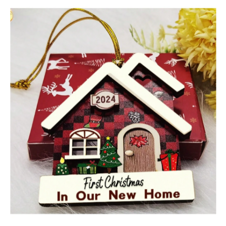 New Home 2024 Acrylic Tree Ornament - A cute little, acrylic Christmas tree ornament to celebrate a first Christmas in a new home in 2024! It features a cute house design and the words " 2024. First Christmas in our new Home" - it will be a treasured memento for anyone who who is celebrating the start of a new chapter in a new home in 2024.