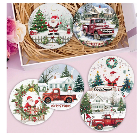Festive Coasters - Red Pickup (6 pieces) - A set of 6 coasters, each with a coordinating snowy scene with a red pickup truck or Santa design. The coasters have a soft, bendable rubbery feel to them with a soft, flocked top. They are designed for optimum liquid absorption and fast drying. Use them in your lounge, bar or dining room! These also make a great addition to a coffee or foodie gift hamper.