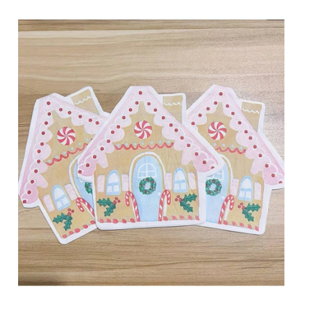 Gingerbread House Serviettes (20s) - Add some extra festive fun to your Christmas place settings with these cute Christmas Gingerbread House-shaped serviettes. Pack includes 20 serviettes in beautiful festive colours and cute gingerbread house shape with printed image on the front and back.