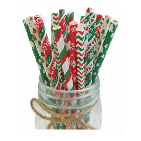 Festive Paper Straws (25s) - A pack of 25 brightly coloured paper straws, each with a festive design. Add them to your Christmas party for added festive fun!