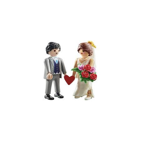 This DuoPack includes a wedding couple with a heart and a bouquet of flowers. The bride is beautiful in her white dress with lace detail, white high heels and removable accessories like her veil and gold hair accessory. Her bouquet of bright pink and red roses add a splash of colour. The groom looks dapper in his best suit and the happy couple are joined together through holding the symbolic heart.