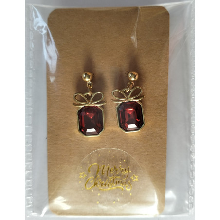 Festive Earrings - Ruby Gift - These novelty earrings are so pretty, they will have everybody at the Christmas party fooled! They are elegant ruby red diamante with a gold border and bow in the shape of a wrapped gift. They will look beautiful with your festive dress up or make a cute Secret Santa, DIY cracker or Stocking filler gift.