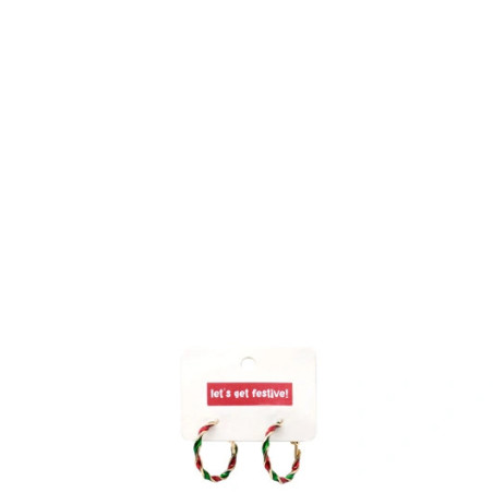 A fun addition to your festive outfit - these pretty hoop earrings feature Christmas coloured accents. Comes packaged on a hanging tab with the words "Lets get festive".