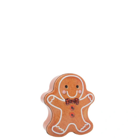 This adorable gift tin is in the shape of a Gingerbread Man Cookie and features such cute details. Fill it with chocolates, biscuits, bath and body items, socks, jewellery... or anything else you can think of. Tin measures approximately 13.5cm x 11.5cm x 5cm and has a removable lid.
