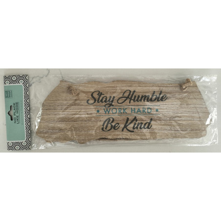 Decorative, Wooden Wall Plaque - Stay Humble - Wooden wall plaque with rope and the words "Stay Humble. Work Hard. Be Kind." written on it in a pretty, decorative print.