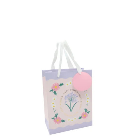 The Scripture & Verse Small Gift Bag features a beautiful floral design with the words "Best Wishes" and coordinates beautifully with other items in the range. The perfect way to present your Scripture & Verse gift! Bag measures 18 x 10 x 23cm and features fabric handles and a round, pink gift tag.