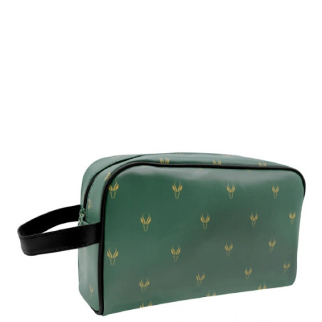 For the man who loves South African Rugby! This large-size toiletry bag features an easy to wipe clean, PU fabric with an all over springbok print in awesome green and gold colours, as well as a carry handle and zip closure with a silicone Jenma zipper tag. Toiletry bag measures approximately 25cm x 16cm and features a lined inner compartment.