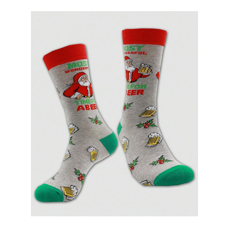 For the beer drinkers! These cute festive socks feature an all over beer and holly print, as well as a beer drinking Santa with the words "Most Wonderful Time for a Beer". A cute and fun gift to give this festive season! Add it with some beer or our cute festive bottle openers for a fun gift.