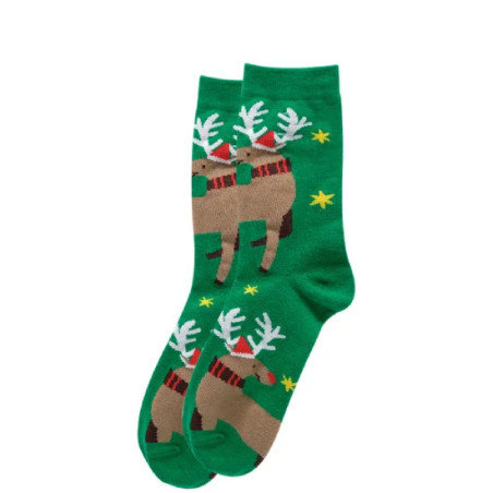 Jenam Christmas - Novelty Socks - Green Reindeer (Adult Size) - There is just something super festive and "Christmas-y" about chilling in your Christmas-themed socks on Christmas Eve and Christmas morning. Jenam has a variety of super fun and cosy Christmas-themed socks - great to give as a fun, novelty Christmas gift, stocking filler or secret Santa gift. One size fits all adults.