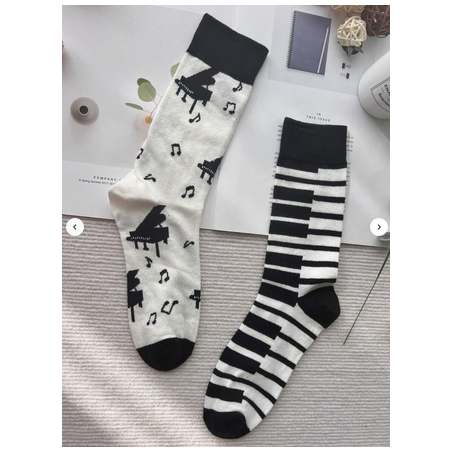 For the Piano teacher or piano player! A fun pair of mis-match socks featuring a coordinating monochrome piano design. Pair this item with other items from our gift range to make up a unique gift that is tailored for the recipient.
