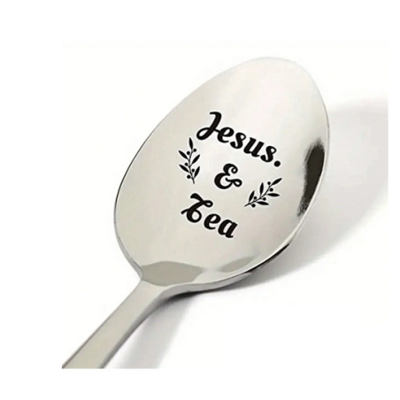 Jesus & Tea - A beautiful gesture to add that "something special" to a tea-themed or quiet time-themed gift hamper! Spoon is longer length (19cm) and features the words "Jesus & Tea" with decorative leaves on either side.