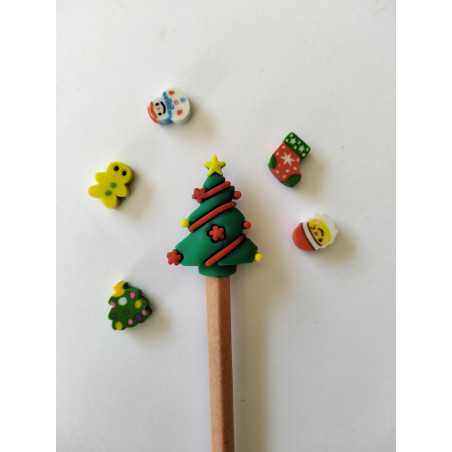 Festive Pencil Topper - Tree - An HB pencil with festive topper and 5 random mini Christmas erasers. Add them to Christmas stockings, stationery gifts or DIY crackers this festive season! Also available with other toppers (Reindeer, Santa or Snowman).