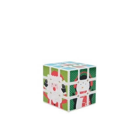 Cube measures approximately 6cm x 6cm x 6cm and features a cute festive image on each side (reindeer, penguin, Santa, snowman, etc).