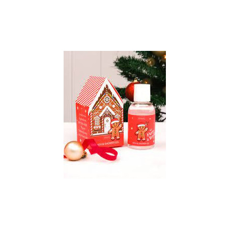 Jenam Christmas - Bath & Shower Gel - This adorable little gingerbread house packaging includes a 100ml bottle of Cranberry scented bath & shower gel in a resealable bottle. A cute gift for girls of all ages! Also great as a stocking filler or addition to a pamper gift hamper this Christmas.